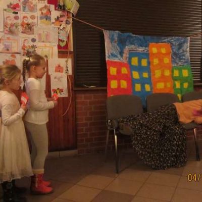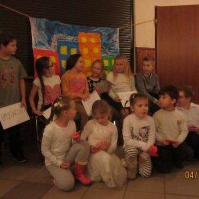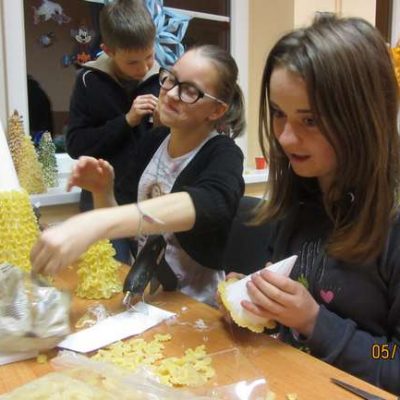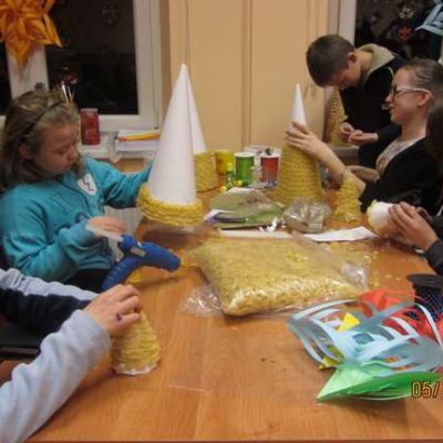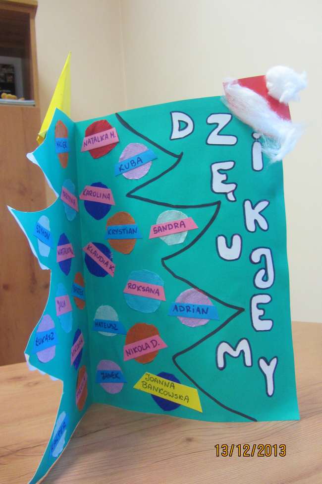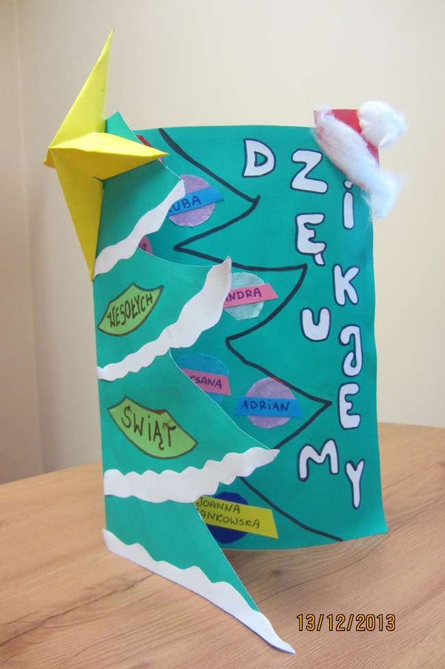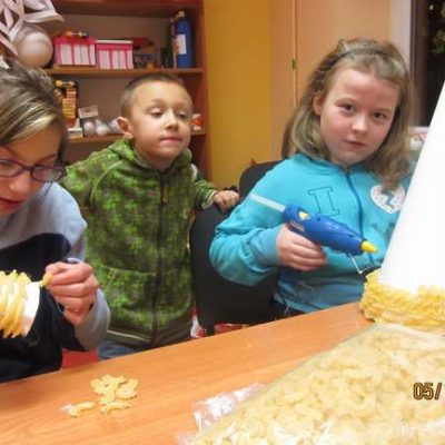 – w Cieszowie obejrzeliśmy wspaniałe przedstawienie o walce dobra ze złem, mogliśmy zakupić za symboliczną kwotę cudne anioły na choinkę (dzieci zbierają w ten sposób na magnetofon do świetlicy – może ktoś chce im pomóc?); w Jabłowie dzieci zrobiły piękne choinki świąteczne oraz mikołaje z papieru „marche” śpiewały mikołajowi kolędy;
