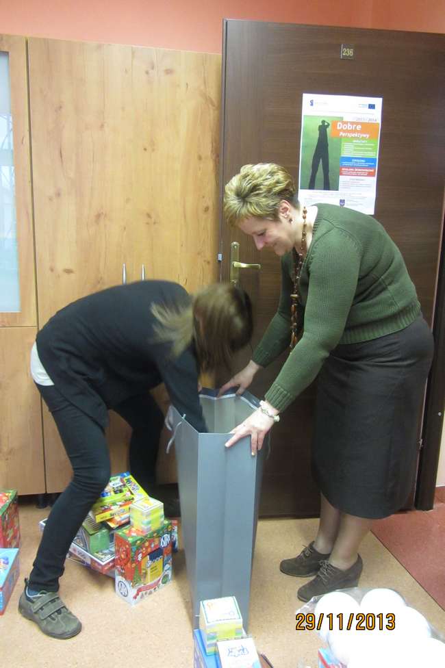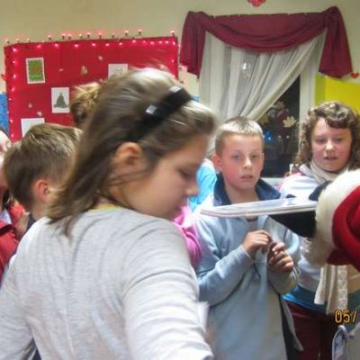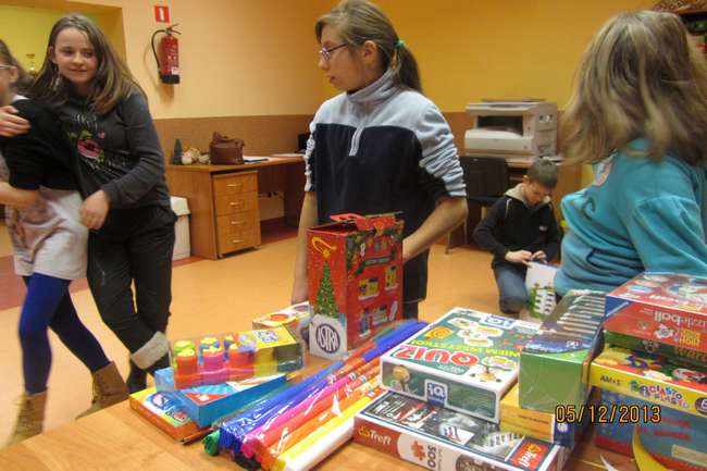 Jako że – mikołajowych paczek robiło się coraz więcej, a zmniejszała się ich zawartość w tym roku pracownicy GOPS wymyślili nową formułę spotkania mikołajkowego. Po zebraniu „listów do św. Mikołaja” pracownicy GOPS udali się z misją do Mikołaja aby przygotował wieeellllkie paczki dla każdej świetlicy – w tych paczkach spełniliśmy marzenia wszystkich uczestników świetlic. Znaleźli oni tam nowe gry, zabawki, słowniki, wiele materiałów plastycznych a nawet dywany, aby można na nich się bawić lub słuchać bajek. Mikołaj nie zapomniał także, że każde dziecko chciałoby dostać coś tylko dla niego, więc fura cukierków też znalazła się w paczce. Pracownicy GOPS wraz z Mikołajem odwiedzili każdą świetlicę oraz KIS. W każdej Mikołaj został ugoszczony oraz obdarowany cudownymi własnoręcznie zrobionymi upominkami. W każdej świetlicy widać było pracę i zaangażowanie dzieci. I tak: